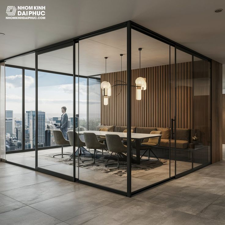 - Phòng làm việc: Có thể chọn cửa lùa (trượt) để tiết kiệm diện tích, tạo cảm giác thông thoáng. Với văn phòng tại gia hoặc không gian sáng tạo, cửa kính trong suốt giúp lấy sáng tự nhiên và mở rộng tầm nhìn.