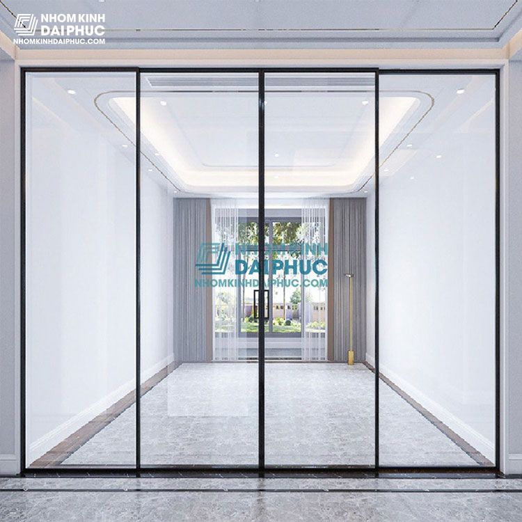 - Mẫu cửa nhôm slim thông phòng cho không gian nhỏ.